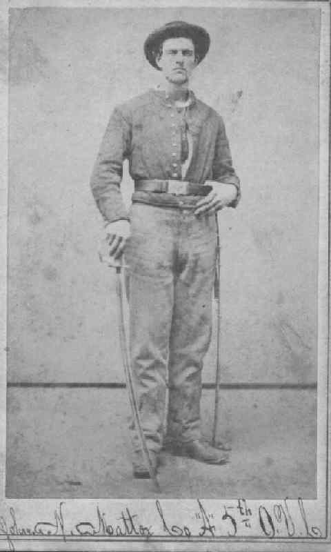 | NAME: John N. Mattox REGIMENT NAME: 5 Ohio Cavalry Side: Union Company: A Soldier's Rank In: Pvt Soldier's Rank Out: Pvt Film No. M552 roll 68 Notes: UNION OHIO VOLUNTEERS 5th Regiment, Ohio Cavalry He was married to Rebecca Ann Beck. Shortly after the war they moved to Sullivan, Moultri County, IL where he is buried in theWhitfield Cemetary. | ![]() |